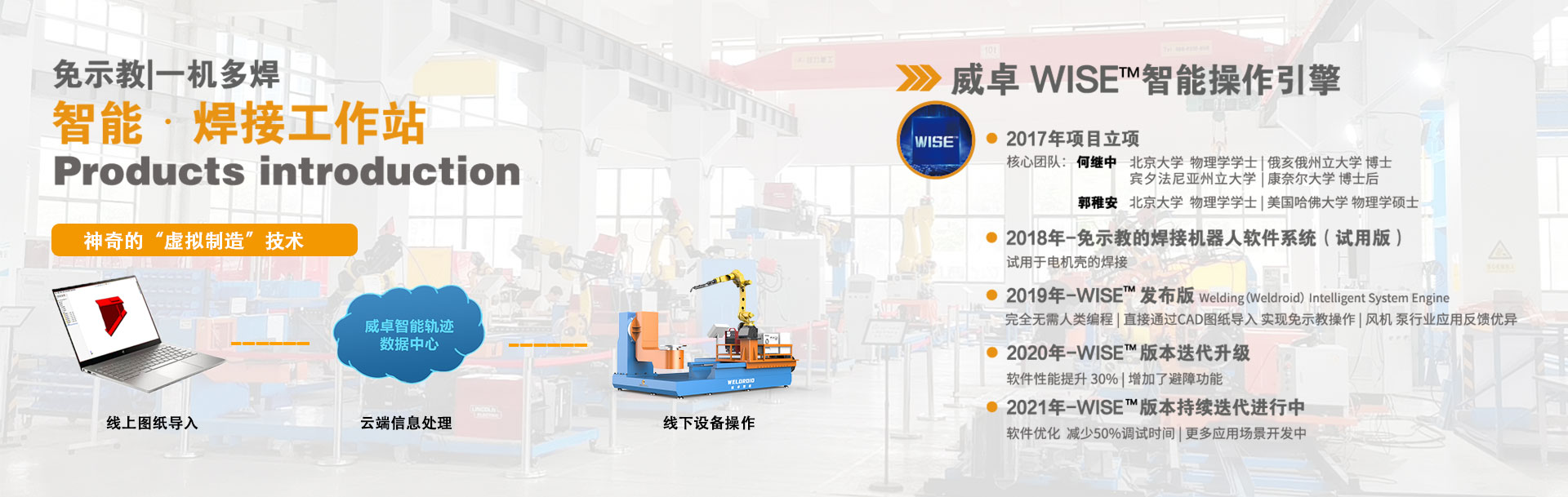立即咨詢 現(xiàn)在聯(lián)系我們:0510-85384033無錫威卓智能機器人有限公司成立于2017年,是無錫市政府引進的科技領軍型高新技術企業(yè),公司研發(fā)團隊80余人,我們堅持自主創(chuàng)新,利用自主開發(fā)的虛擬制造技術對傳統(tǒng)焊接行業(yè)進行升級改造。 公司主推的工業(yè)風機系列-智能焊接工作站產(chǎn)品,具有免示教、實時跟蹤、簡易工裝、傻瓜式操作等優(yōu)點,真正幫助企業(yè)解決了招焊工難,用工成本高,焊接質量不穩(wěn)定等問題。
